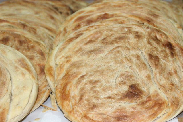 Der Bäckermeister Aydın Erdemir Usta kommt ursprünglich aus Erzurum und bäckt schon seit 1991 diese köstlichen Fladen in Ereğli-Konya. Neugierig wie ich bin, fragte ich, warum er Erzurum verlassen habe. Nun, in Ereğli regne es weniger und es sei wärmer 😉 Er kannte die „Tahınlı“ nicht in dieser Form. Aydın Usta sagte, dass diese Fladen hauptsächlich um Konya herum bekannt sind. Die Herren erzählten mir verschiede Legenden. Eine Legende geht zurück ins Mittelalter. Damals machten viele Reisende Halt in den Kervansarays um Konya herum und am Kloster von Mevlana. Der Legende nach, wurden diese Fladen schon zu Celaleddin Rumi Zeiten an die Gäste mitgegeben, die noch eine weite Reise vor sich hatten. Die Fladen sind sehr sättigend und man kann auch nicht viel davon essen. Deshalb sind sie auch während der Fastenzeit so beliebt. Wenn man diese zum Frühstück genießt, verspürrt man tagsüber einfach keinen Hunger mehr. Aydın Usta erklärte, dass sie zu Beginn der Fastenzeit etwa 1500 Stück am Tag in drei Schichten backen. Zum Ende der Fastenzeit seien es nur noch etwa 800 Stück. An dem Tag, als ich bei ihnen war, haben sie in zwei Schichten etwa 800 Stück minus ein paar gebacken!