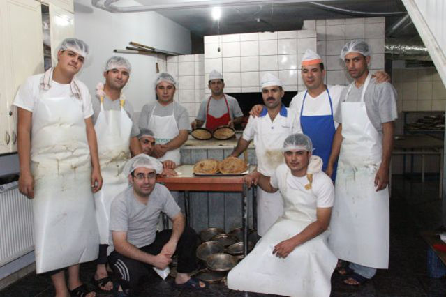 Usta Aydın Erdemir (weißer Kittel mit blauem Kragen, der Einzige mit Schnurrbart), bei ihm seine Mitarbeiter Sedat Sar, Savaş Aydın, Cumali Kale, Ufak Pişkin, Emre Aydınlı, Abdurrahman Tıraş, Mustafa Karaman, Ömer Yılan und Cemil Uslu.